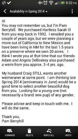 moment I felt happy. After talking to you I know I found the right breeder to get me the right puppy to